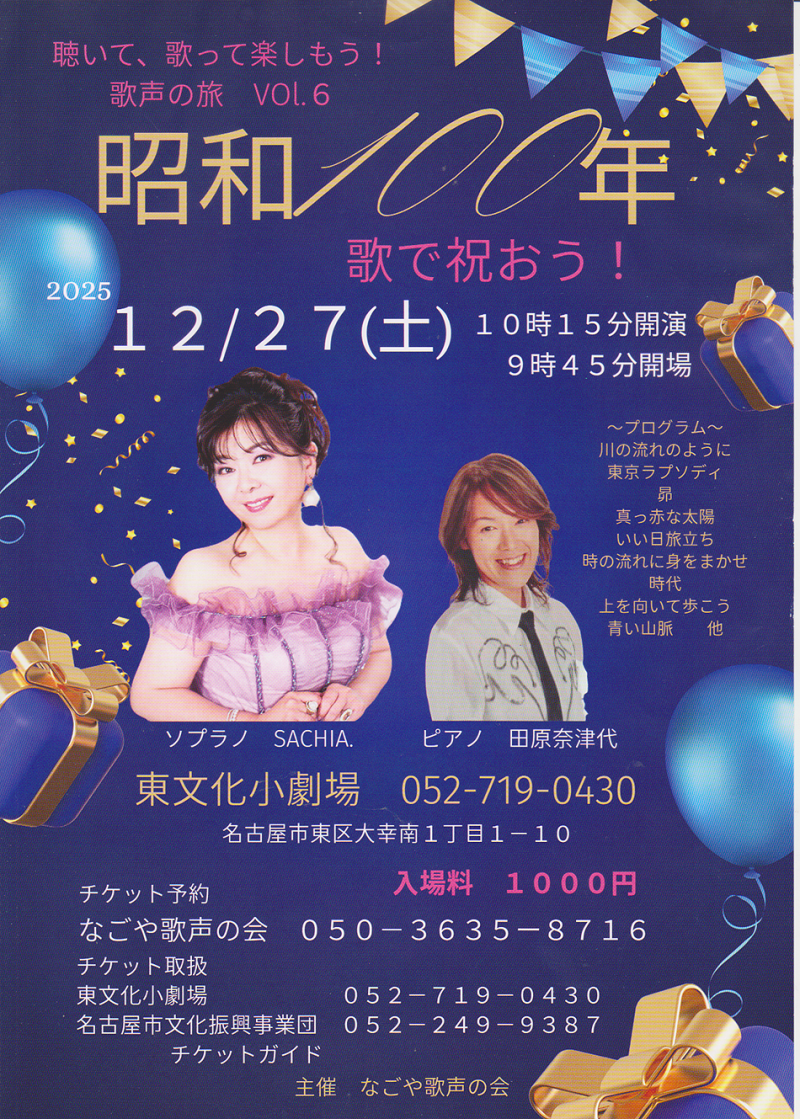 聴いて、歌って楽しもう! 第6回 歌声の旅 2025年12月27日 東文化小劇場